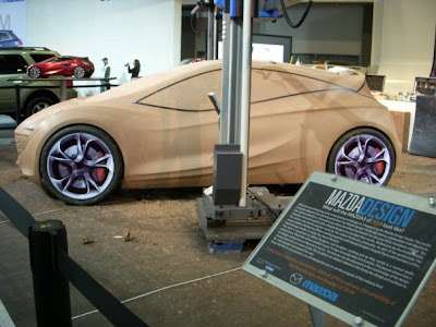 As Mazda promised us, Mallory McMorrow's rendering that won the “2018 Mazda3 Design Challenge” is taking shape in the form of a life-size clay model at the 2007 Los Angeles Auto Show. According to Mazda, the clay model will be finished by the time the auto show comes to a close, on Sunday, November 25. We’ll have the full story as soon as the Japanese carmaker releases pictures of the finished vehicle later on this week, but in the meantime, follow the jump and check out our image gallery of the clay model being meticulously scraped into shape by the Mazda folks. -Continued after the jump